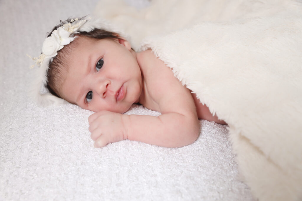 Dès son arrivée, Genna s’est laissée apaiser par la chaleur douce du studio, spécialement pensé pour les séances newborn. Les tons naturels, les matières douces et les accessoires adaptés permettent de créer un univers rassurant où les nouveau-nés peuvent s’endormir paisiblement.